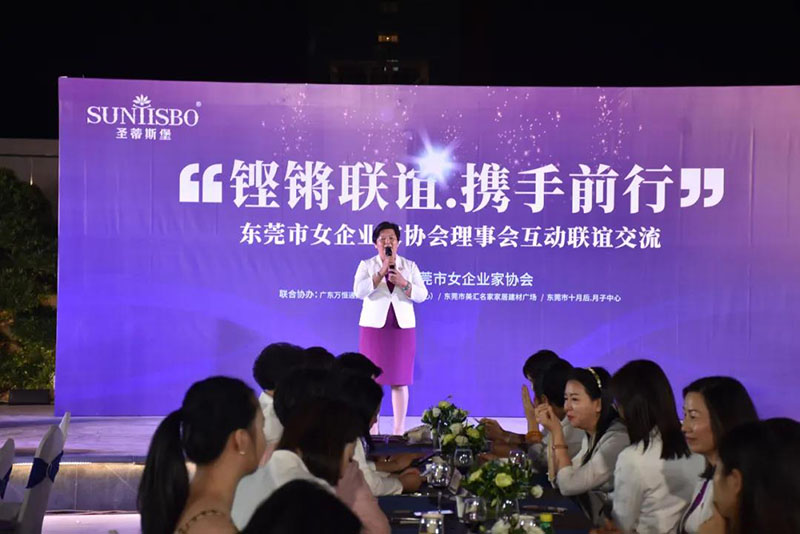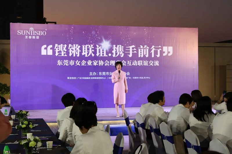接下来,东莞市女企业家协会理事会会长叶小红女士上台发言,她表示非常感谢350vip8888新葡的京集团集团举办此次联谊交流会,同时,对我们的产品和企业文化给出了很高的评价。她号召东莞市女企业家协会以后要更多的举办此类交流联谊活动,以此增进会员企业之间的联系和了解,为未来进一步交流发展开创新局面!她希望我们能携手同行,强强联手,共赢未来,共创新辉煌!